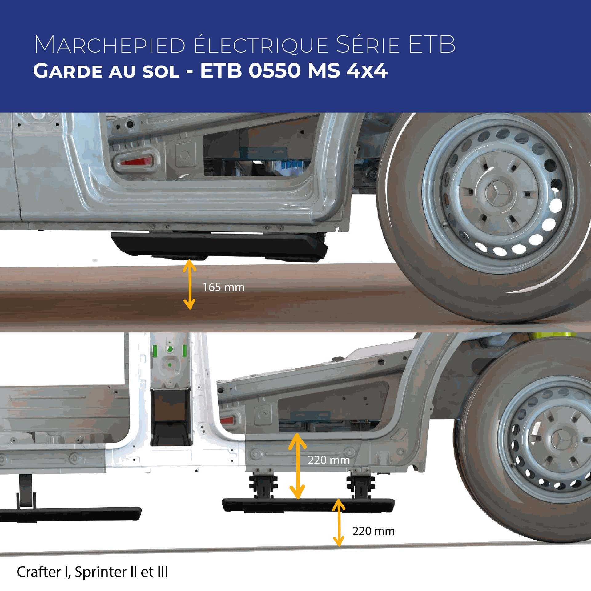 Série ETB | Marchepied latéral électrique entièrement automatique 550 mm pour porte conducteur ou passager - pour Crafter I, Sprinter II et III