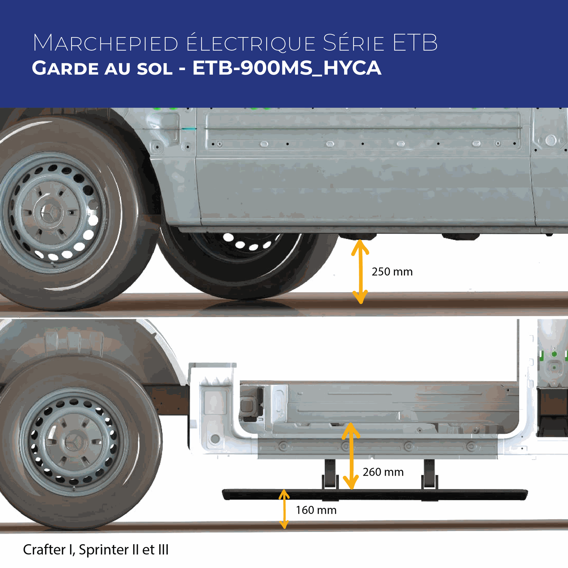 Série ETB | Marchepied latéral électrique entièrement automatique 900 mm pour Crafter I et Sprinter II et III